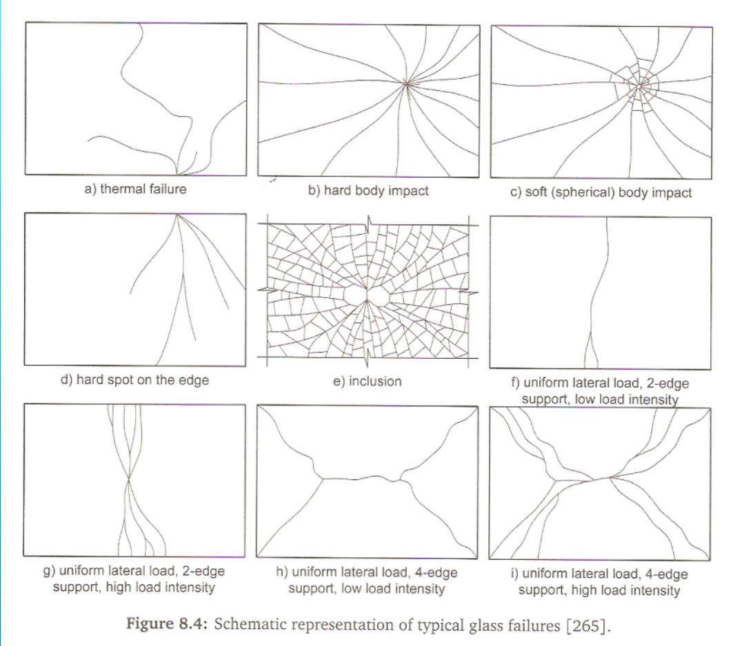 รูปด้านล่างเป็นตัวอย่างการแตกของกระจกแบบต่างๆ
