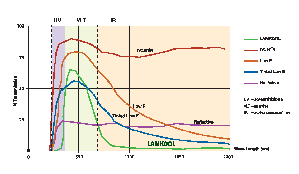 ในความเป็นจริง หากเราต้องการใช้กระจกเพื่อต้องการให้แสงสว่างส่องผ่านเข้ามาในอาคารได้มากๆ เพื่อให้มีความโปร่งใสสูง กระจกที่กันความร้อนจากแสงแดดได้ดีและให้ความสว่างมากและมีแสงสะท้อนน้อยจะกันความร้อนรวมจากแสงแดดได้เพียงประมาณ 50-60% และจะเน้นกันความร้อนจากรังสีอินฟาเรดเป็นหลัก