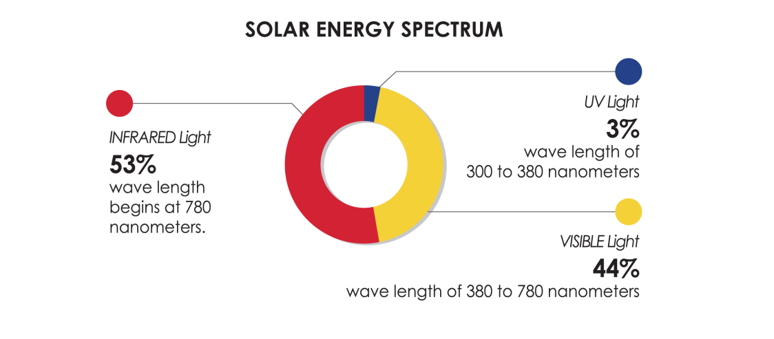 ความร้อนที่เกิดขึ้นจากแสงอาทิตย์เกิดจากทั้งสามส่วนรวมกัน หากต้องการกันความร้อนให้ได้ดี จะต้องกันรังสีทุกส่วนให้ได้เกือบหมด ถ้ากระจกที่ลดความร้อนจากรังสีอินฟาเรดได้มากเพียงอย่างเดียวไม่ได้หมายความว่ากระจกนั้นสามารถลดความร้อนจากแสงอาทิตย์ได้สูงไปด้วย เพราะรังสีอินฟาเรดเป็นเพียงส่วนประกอบหนึ่ง ( ประมาณ 50% ) ส่วนหนึ่งของพลังงานของแสงอาทิตย์เท่านั้น ในทำนองเดียวกันกระจกที่่ลดแสงสว่าง(มืด)มากๆก็ไม่ได้หมายความว่ากระจกนั้นสามารถลดความร้อนได้ดีเช่นกัน เนื่องจากกระจกอาจจะกันรังสีอินฟาเรดได้ต่ำมาก ดังนั้นกระจกที่กันความร้อนที่ดีต้องสามารถป้องกันความร้อนได้ทั้ง "แสงสว่างและอินฟาเรด"
